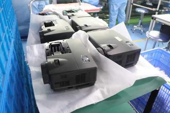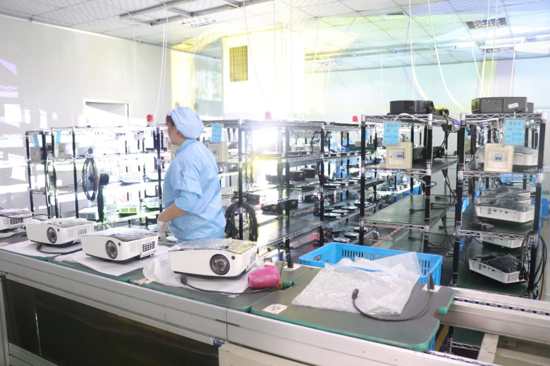 公司現(xiàn)有員工580人 擁有組裝、測試、老化、一貫化作業(yè)的高效率投影機組裝線7條,各類設(shè)備儀器400余臺套,具備每年100萬臺數(shù)字投影機生產(chǎn)能力。