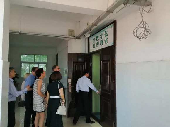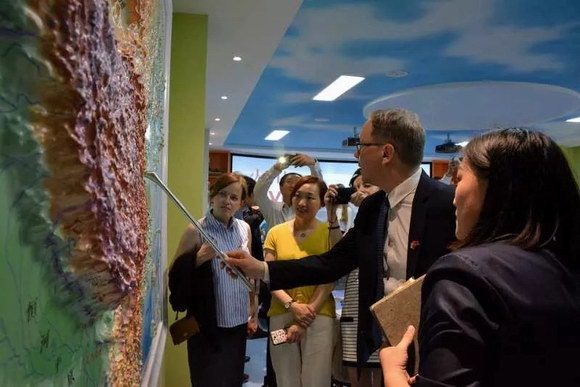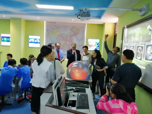 代表團(tuán)參觀羿飛數(shù)字化地理教室