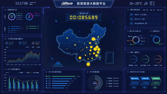 針對在旅游場景中游客體驗常見的游客走失、景區(qū)內交通擁堵、自然災害等安全隱患,以及景區(qū)精準營銷和運營統(tǒng)籌,游客舒適體驗提升困難等問題,大華股份依托AI、物聯(lián)網(wǎng)、票務系統(tǒng)、視頻云技術,結合大數(shù)據(jù)分析、多平臺融合等技術應用,形成了高智能化、高安全性的大華智慧旅游解決方案。方案融合景區(qū)的交通、旅游、安全、通行、消防、信息發(fā)布、票務數(shù)據(jù)等系統(tǒng),將信息盡數(shù)掌握,讓景區(qū)安全保障無死角,全方位覆蓋旅游行業(yè)的“吃、住、行、游、購、娛”。