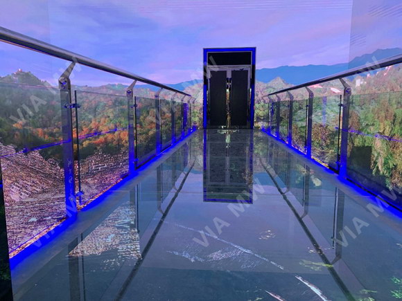 其中太空植物博覽園3D七百二十度沉浸式影院可帶您探索神秘的太空、感受四季大自然的神奇魅力,在穿過空中玻璃走廊時(shí),將全方位引領(lǐng)游客切身感受全國(guó)第二個(gè)3D七百二十度全景影院帶來的科幻效果。