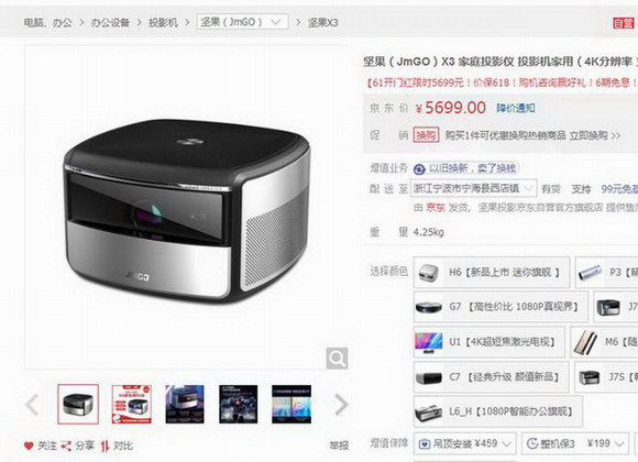 還有堅果X3投影儀,這款降幅也比較大,但是相對當貝F1,還稍稍差點。這款之前的售價大概是5899元上下浮動,本次618也是直降200元,直接打出了5699元的活動價。因為此類數(shù)碼產(chǎn)品單價高,看上去降幅不大,但是對于降價金額來說,比起家用類產(chǎn)品,那可是不小的數(shù)目。