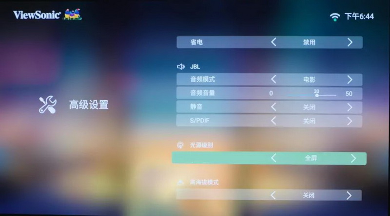顯眼的JBL音箱LOGO,優(yōu)派X10-4K配備了2個(gè)8W JBL喇叭,可以在關(guān)機(jī)的時(shí)候充當(dāng)藍(lán)牙音響用。