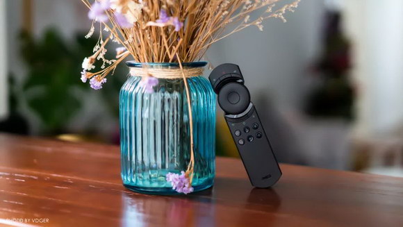 ▲堅果J7S的遙控器非常小巧,整體延續(xù)了堅果智能投影儀一貫的設(shè)計風(fēng)格,造型別致、功能齊全,中間的圓形區(qū)域可以很方便的進(jìn)行上下左右和確認(rèn)操作,按鍵回饋力度適中、手感舒適,不過部分按鍵面積略微有些偏小,剛上手的用戶可能需要一點(diǎn)點(diǎn)時間適應(yīng)一下!