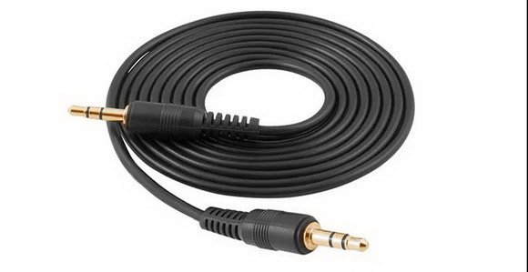 3,把1對1音頻線其中一端接酷樂視投影儀耳機孔,另外一端接麥巢音響外音輸入接口