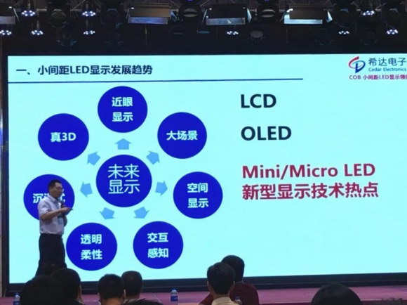 希達(dá)電子副總經(jīng)理汪洋博士,以一篇題為《倒裝LED COB是超高密度小間距顯示的未來》的報(bào)告,以未來十年顯示領(lǐng)域的發(fā)展趨勢(shì)深入剖析COB小間距產(chǎn)品在“微”顯示時(shí)代的領(lǐng)創(chuàng)性
