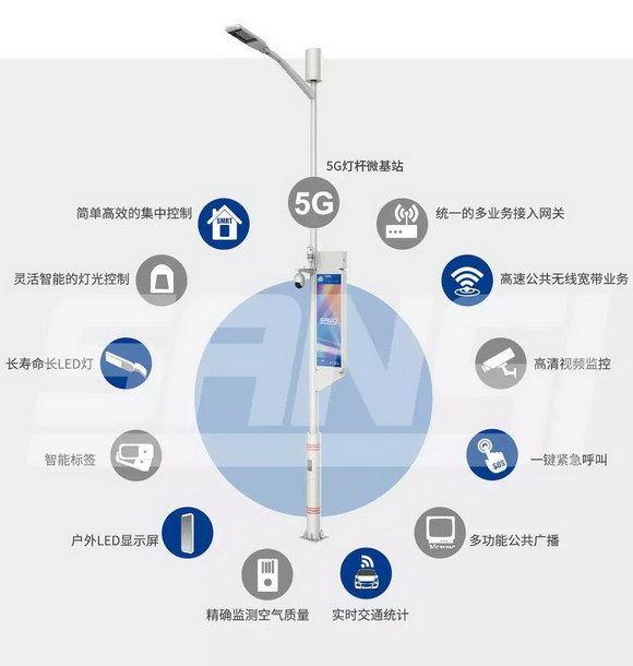 智慧路燈采用“共享燈桿”的方式,集成了公共WiFi、視頻監(jiān)控、公共廣播、溫度監(jiān)測、濕度監(jiān)測、風(fēng)速監(jiān)測、空氣質(zhì)量監(jiān)測、緊急呼叫、信息發(fā)布等功能。