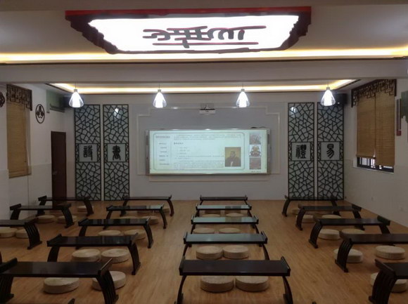 教室中配備了雙投影白板教學(xué)系統(tǒng)、數(shù)字國學(xué)探究系統(tǒng)、國風(fēng)課桌椅等教學(xué)設(shè)備,將傳統(tǒng)文化的歷史沉淀與現(xiàn)代科技完美融合。建立富有多樣性、選擇性的傳統(tǒng)文化教學(xué)環(huán)境,滿足學(xué)生探索歷史奧秘、認(rèn)識社會生活環(huán)境等不同學(xué)習(xí)需要。