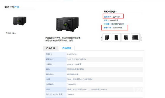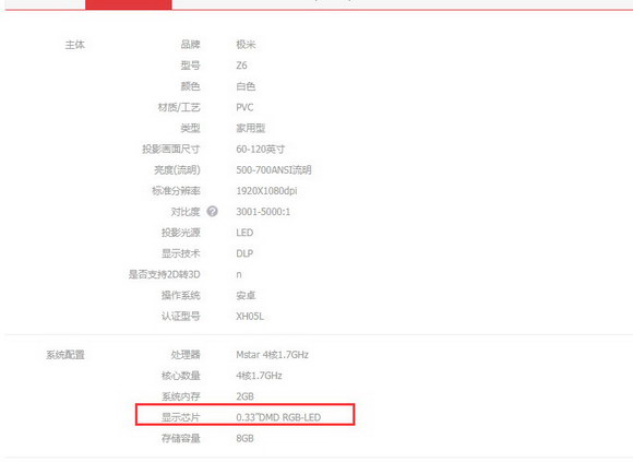 投影機(jī)的顯示芯片尺寸越大,畫(huà)質(zhì)越好售價(jià)越貴。比如極米Z6售價(jià)2679,投影儀芯片尺寸為0.33英寸,