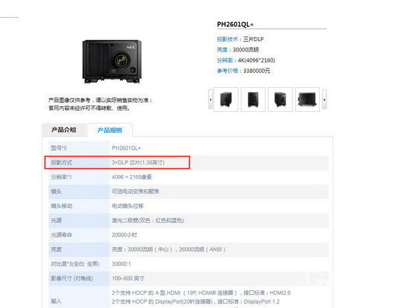 而三片式DLP(3DLP)屬于高端貨,畫(huà)質(zhì)方面做到極致,造價(jià)昂貴,單臺(tái)售價(jià)可高達(dá)338萬(wàn)元,體積巨大,一般在電影院才會(huì)用。