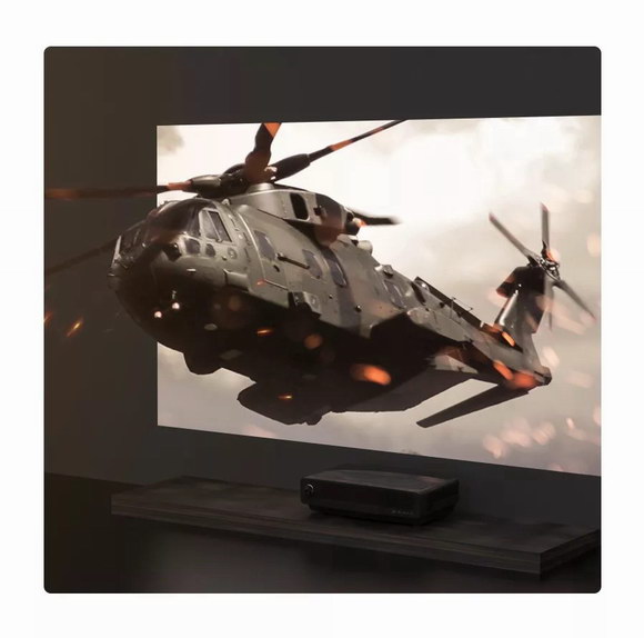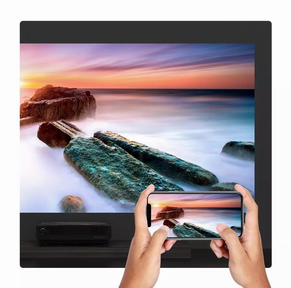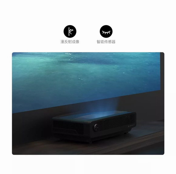 機(jī)器后端貼近墻面就能投射出100英寸大屏,更節(jié)省空間。