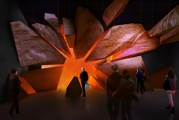 高嶺崖利用3D Mapping設(shè)計了一個石塊瞬間炸裂的藝術(shù)裝置,利用多角度投影的方式,演繹了陶、瓷在燒制過程中陶瓷材料的動態(tài)變化,為觀眾營造了一個充滿詩意而又奇幻的沉浸式溯源空間。