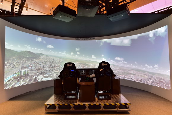 往屆人氣爆棚的國畫飛行模擬視景系統(tǒng)這次實(shí)現(xiàn)了全面升級(jí),以3臺(tái)LP60SL虛擬仿真投影機(jī)投射半徑為3米的180度弧幕,逼真度更高,體驗(yàn)感更強(qiáng)。國畫虛擬仿真投影機(jī)具有動(dòng)態(tài)對(duì)比度高、延時(shí)短、運(yùn)動(dòng)兼容性好等核心優(yōu)勢,在國內(nèi)居于領(lǐng)先水平。