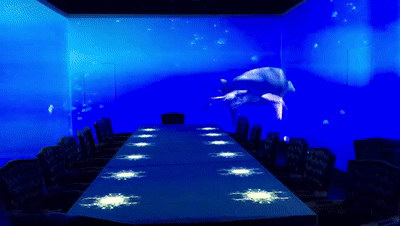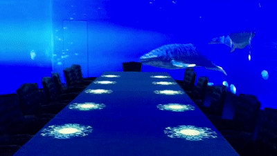碩大的鯨魚(yú)從一個(gè)角落穿出來(lái),在四周游動(dòng),正想和你共進(jìn)晚餐。當(dāng)你看到它朝你游來(lái)的時(shí)候,你剛想要伸手撫摸,它卻又在此時(shí)從墻壁上隱去。好的產(chǎn)品,自己會(huì)傳播,來(lái)這樣的餐廳用餐,首先就是拿起手機(jī)拍拍拍了呢!
