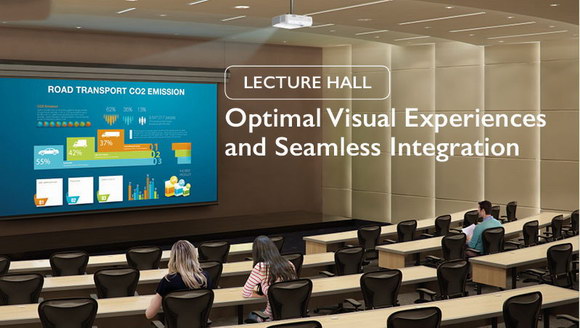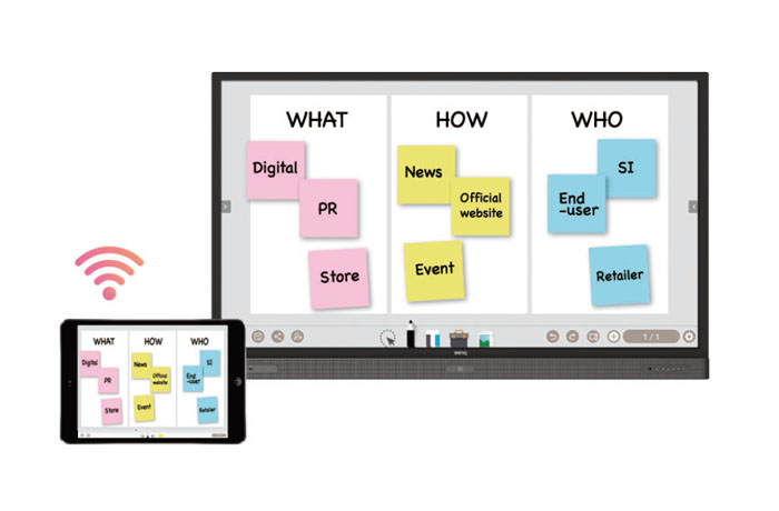 為了讓無論距離遠(yuǎn)近、角度幾何的觀眾都能看清屏幕,主顯示工具投影機(jī)在亮度方面要求更高,明基高亮投影機(jī)在大型空間應(yīng)用便捷,可360度靈活安裝。而坐在犄角旮沓方位的觀眾,難以得到舒適的觀看體驗(yàn),此時(shí)明基可提供互動(dòng)教育平板、液晶拼接屏等設(shè)備補(bǔ)充顯示,大小屏搭配使用。無線協(xié)作系統(tǒng)加持之下,更能擺脫線材束縛,提升空間設(shè)計(jì)彈性。