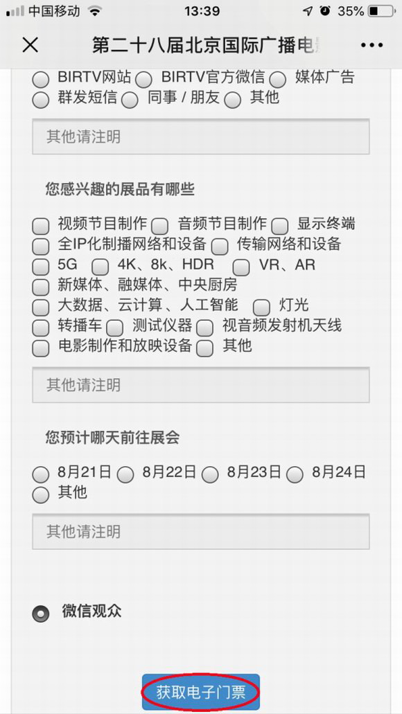 3.逐一勾選信息項(xiàng),點(diǎn)擊獲取電子門票