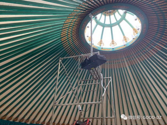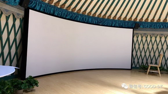 1、此板塊的弧形融合系統(tǒng)采用了5臺6000流明ROLY樂麗激光工程投影機(jī),弧形融合,融合帶為單臺投影機(jī)畫面的19%,配置一塊12.5*2米的投影硬幕。