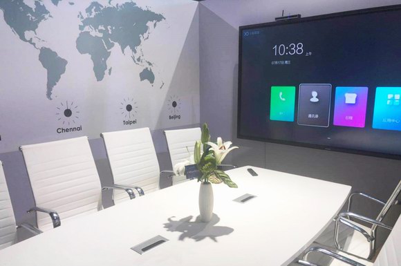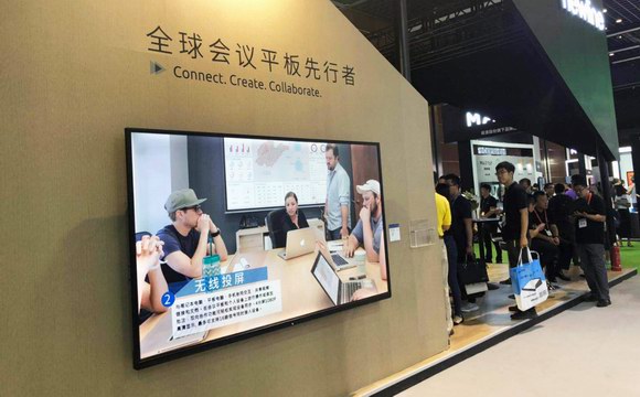 newline展位中巧妙地設(shè)計了一間Meeting room,模擬跨國公司的遠(yuǎn)程視頻會議室場景,新品IP86功能全面,大尺寸屏幕讓遠(yuǎn)程視頻會議如同面對面般接近。
