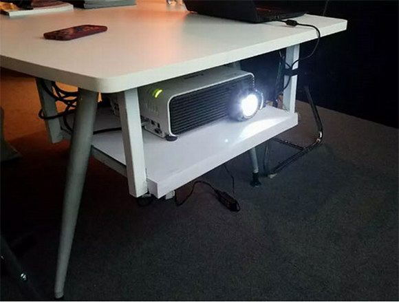 大范圍鏡頭位移使其可實現(xiàn)桌下隱藏式安裝,節(jié)省了桌面空間,為小面積辦公室或會議室應用帶來了很大便利;同時,電腦和投影機可通過Wi-Fi直接連接進行無線投影。