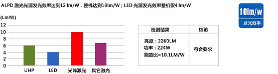 高效率。ALPD®激光光源發(fā)光效率達(dá)到121m/w,整機(jī)發(fā)光效率是LED光源的3倍。