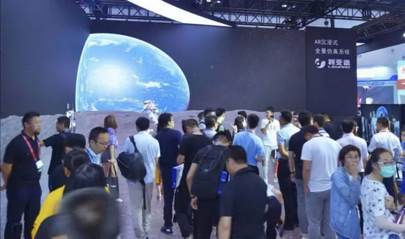 此次利亞德展出的AR沉浸式全景仿真系統(tǒng),將多角度屏幕三維縫合、紅外跟蹤定位、三維實時PBR渲染、多通道渲染同步顯示等眾多高新技術(shù)應(yīng)用于一體,以交互式、沉浸式的呈現(xiàn)方式,為參與者創(chuàng)造身臨其境的科技文化新體驗。利用這一技術(shù),參觀者在互動體驗時,無不感慨真實的身臨其境之感。