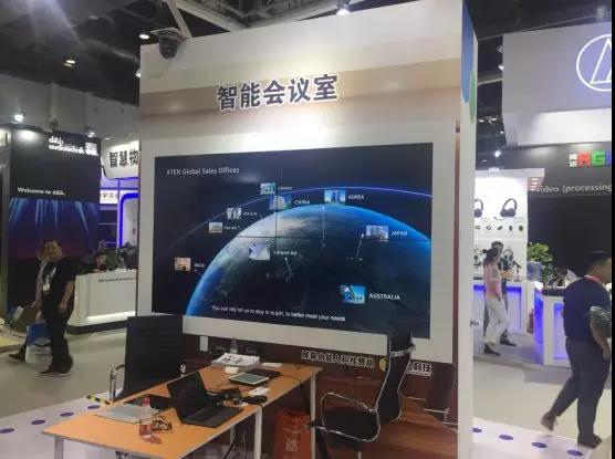 ATEN宏正展出的智能會(huì)議室,完美實(shí)現(xiàn)視頻流匯入?yún)R出,多信號(hào)之間的無(wú)縫切換,而且支持集成會(huì)議室內(nèi)眾多專業(yè)級(jí)影音設(shè)備,擁有簡(jiǎn)單友好的人機(jī)交流界面,還可無(wú)縫接入監(jiān)管控平臺(tái)。