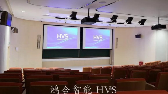 兩臺NEC NP-PX803UL+高清投影機,配備傳統(tǒng)推拉式懸掛黑板,實現(xiàn)了數(shù)字課件與板書教授的大課堂應(yīng)用;舞臺燈光與網(wǎng)絡(luò)攝像機、半球攝像機合理搭配滿足遠(yuǎn)程會議、直播錄課要求,加之同聲傳譯功能,完成多國多語種實時溝通;AMX中控系統(tǒng)操控全場聲、光、電設(shè)備運行。