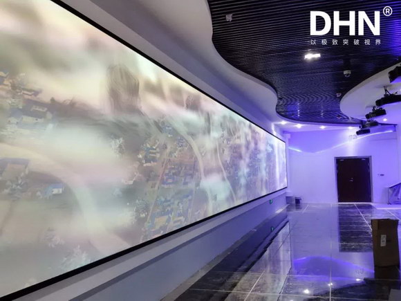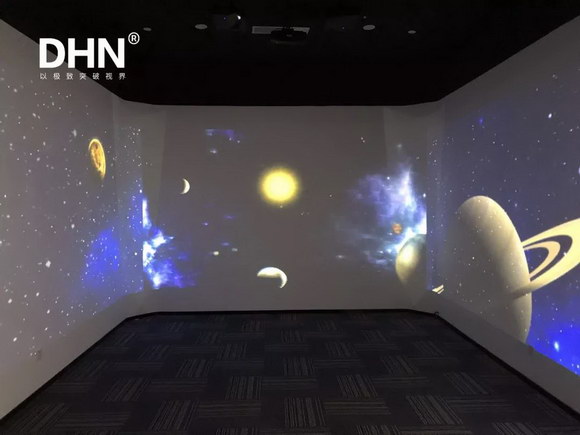 案例概況:該項(xiàng)目通過(guò)DHN工程激光投影儀形成了三折幕融合大屏投影,實(shí)現(xiàn)全方位立體沉浸感效果。