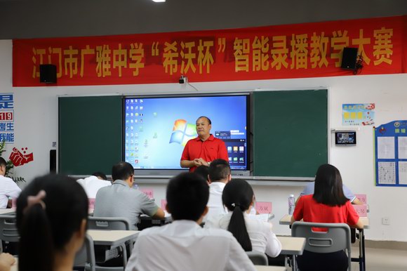 針對此次活動,江門廣雅中學(xué)的主管教學(xué)工作的高主任發(fā)表講話。他指出,本次比賽獨具創(chuàng)新性與示范意義,學(xué)校將希沃交互智能錄播深度應(yīng)用于說課和賽課,這樣的嘗試在全省乃至全國屬首次,也感謝本次活動支持方希沃的說課培訓(xùn)、課例打磨以及對決賽現(xiàn)場全程支持,讓賽課圓滿落地。