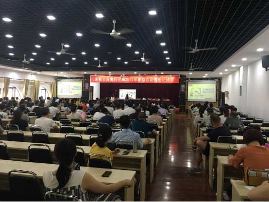為貫徹落實《教育信息化十年發(fā)展規(guī)劃(2011-2020年)》要求,響應(yīng)國家《教育信息化2.0行動計劃》部署精神,推進信息技術(shù)與教育教學(xué)全面深度融合,提升教師應(yīng)用現(xiàn)代教育技術(shù)水平, 2019年7月28日,希沃應(yīng)左權(quán)縣教育局邀請,開展了教師信息化教學(xué)能力交流及培訓(xùn)活動。全縣200余位校長及骨干老師相聚在左權(quán)縣宏遠培訓(xùn)中心,共同交流學(xué)習(xí)信息化教學(xué)方法與技巧。