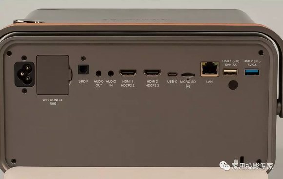 在接口方面優(yōu)派X10-4K的配置還是很豐富的,常用的有兩個(gè)HDMI 2.0(均支持HDCP 2.2)接口、USB-C,USB2.0以及USB3.0接口各一個(gè)、其他的如光纖、音頻輸入輸出口、MicroSD 卡口、有線網(wǎng)絡(luò)LAN口都是具備的。