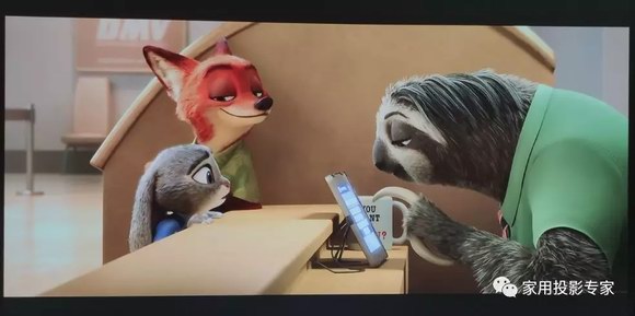 其次我們通過4K藍(lán)光電影《瘋狂動(dòng)物城》觀看優(yōu)派X10-4K的色彩表現(xiàn)。調(diào)試之后的X10-4K在色彩還原方面準(zhǔn)確很多,無論是狐貍尼克,還是兔子朱迪、動(dòng)物城里每個(gè)動(dòng)物的毛發(fā)色彩還原都很準(zhǔn)確,比如圖中三種動(dòng)物的毛發(fā)色彩都是很精準(zhǔn)的還原。