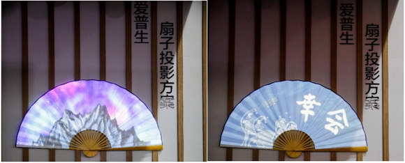 方案,同時(shí)鼓勵(lì)用戶參與店面裝飾,DIY定制更多個(gè)性創(chuàng)意的投影。不論是熱情奔放的活力藝術(shù)展,溫馨舒適的親子兒童樂園,還是清冷內(nèi)斂的日本小酒館,都可以在LightScene投影燈下完成相應(yīng)的店面氛圍轉(zhuǎn)換。借助文化道具,愛普生在古色古香的中國傳統(tǒng)折扇中呈現(xiàn)光影變換,讓表面曲折立體的折扇顯得別有韻味,可以輕松融入到不同的裝修風(fēng)格中,讓整體布置余味悠長。