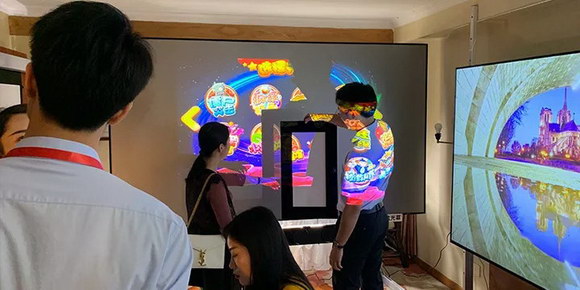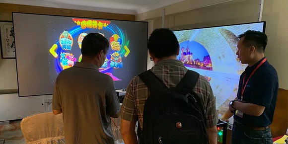 三、 XY銀幕展廳一開展就客商如潮,XY工作人員充滿熱情向客戶介紹產(chǎn)品: