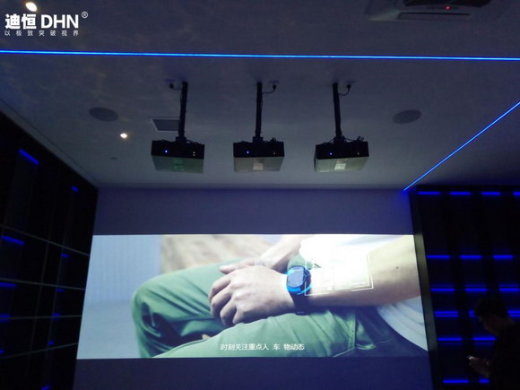 高清大屏,第二部分使用4臺(tái)DM630ST實(shí)現(xiàn)L型大屏,運(yùn)用先進(jìn)的投影
