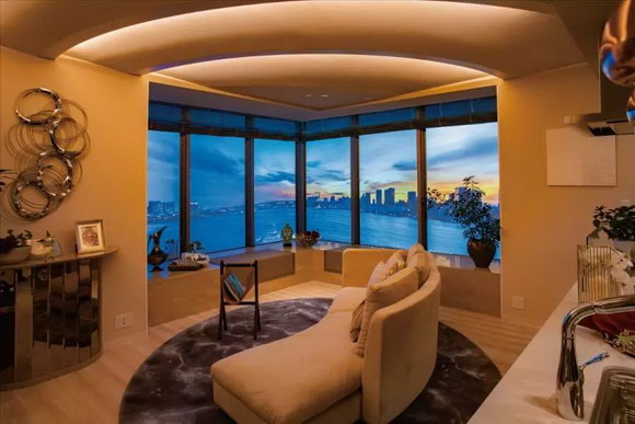 ▲“晴海FLAG展館”首次引進(jìn)的“VIRTUAL STAGE MIERVA眺望型”。運(yùn)用最新技術(shù),在樣板房?jī)?nèi)再現(xiàn)眺望圖像?梢泽w驗(yàn)實(shí)際在客廳的現(xiàn)場(chǎng)感。