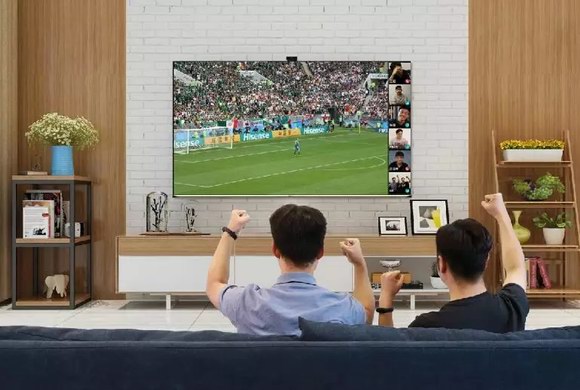 支持大屏和手機同時在線的六路視頻暢聊及共享放映廳,可以讓親友團一起追劇、一切聊球、一起暢聊。個人用戶則可以創(chuàng)建共享放映廳,親友團可共享影視內容,在海信云平臺上通過認證的大V也可以創(chuàng)建放映廳和粉絲共享精彩內容!按笃僚笥讶Α鄙鷳B(tài)躍然屏上。