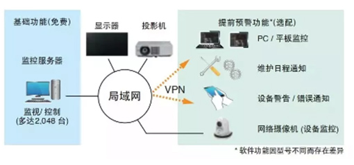 松下激光光源投影機PT-BMZ\BMW系列適用于松下投影機配置的多臺投影機監(jiān)控免費軟件,老師們可通過局域網(wǎng)使用一臺電腦同時監(jiān)控最多2048臺投影機,實時了解投影機狀態(tài),控制調(diào)整投影機執(zhí)行情況,減少了老師們在放學(xué)后、暑假期間對于投影機設(shè)備監(jiān)控維護的人力與時間成本,實現(xiàn)遠程高效管理。