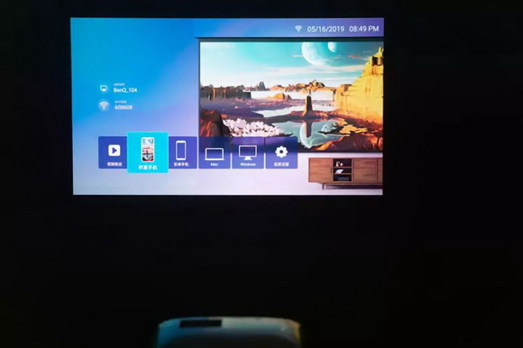 比如案例中的明基i707家用投影儀支持側(cè)面投影,無須正對熒幕擺放。