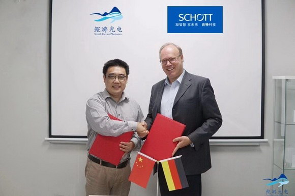 鯤游光電董事長林濤博士和肖特全球副總裁Rudiger Sprengard博士正式簽訂合作協(xié)議