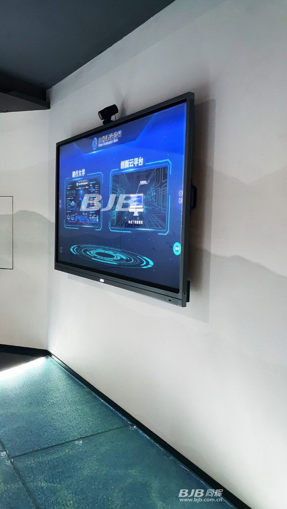 在另一處的互動(dòng)體驗(yàn)區(qū),則使用了同輝信息65寸Q-Meeting,用于實(shí)時(shí)展示某分行與各支行客戶(hù)流量及相關(guān)信息,增加各銀行網(wǎng)點(diǎn)之間的互動(dòng)與聯(lián)系,為分流業(yè)務(wù)辦理提供參考依據(jù)。