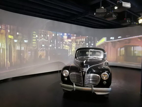 弧形巨幕投影,將舊上海的十里洋場風(fēng)情帶到了大家面前。影像邊緣融合技術(shù)呈現(xiàn)出極具整體感的超大影像畫面,不需其他的道具裝飾,那個(gè)年代獨(dú)有的繁華與哀愁在空中彌漫,而置于中央的老爺車,就是場中絕對的主角。