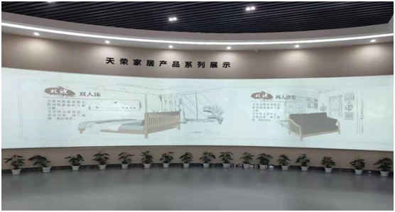 本次項目中共采用12臺宏碁投影機,高端高亮投影系列P6600及專業(yè)工程投影LV-X01分別組合,形成多通道融合弧幕、360°全息投影以及180°全息投影共三種投影方案。其中,多通道弧形投影融合打造出超大畫面背景墻,全方位、立體式展現集團所有的家具產品。多通道投影需要強有力的核心技術做支撐,打造具有較高分辨率并且沒有任何變形失真的環(huán)形畫面,對參觀者營造更有沖擊力和沉浸感的視覺效果。
