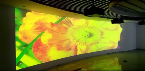 此展項(xiàng)共采用3臺(tái)麥克賽爾MMP-D7010UB激光工程投影機(jī)和1臺(tái)麥克賽爾MMP-D8010UB激光工程投影機(jī)打造而成。4臺(tái)麥克賽爾激光工程投影機(jī)吊裝于展廳頂部,通過多通道融合系統(tǒng),配合麥克賽爾激光工程投影機(jī)先進(jìn)的ACCENTUALIZER圖形處理、畫面渲染技術(shù),4機(jī)進(jìn)行弧幕融合,呈現(xiàn)出極具整體感的超大高清影像畫面,盡展杭州西站樞紐的重要意義。