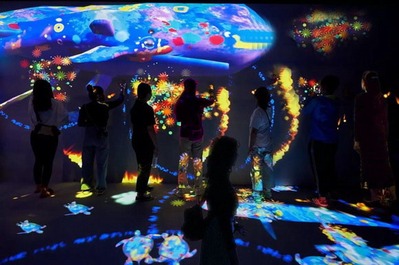 開館當(dāng)天,既有慕名前來的熱心觀眾,也有幸運(yùn)偶遇的景區(qū)游客,參觀者絡(luò)繹不絕,躍躍欲試。進(jìn)入創(chuàng)意館,在光影編織的深;孟笾校麄冇|摸巨大的深海藍(lán)鯨,感受神奇的沙丁魚群,喚醒沉睡的發(fā)光水母,邂逅可愛的深海精靈,遭遇瘋狂的狡猾巨蟒,抗擊兇猛的百變章魚……參觀者紛紛拿起攝影攝像設(shè)備捕捉流光溢彩的深海夢(mèng)幻世界。而熱門互動(dòng)體驗(yàn)區(qū)更是排起了長(zhǎng)龍,搶先體驗(yàn)的游客在運(yùn)動(dòng)中徜徉深海伊甸園之樂,享受沙灘的海浪起伏,感受海蝕洞漂流的刺激,體驗(yàn)震撼的臺(tái)風(fēng)撲面,讓人大呼過癮。