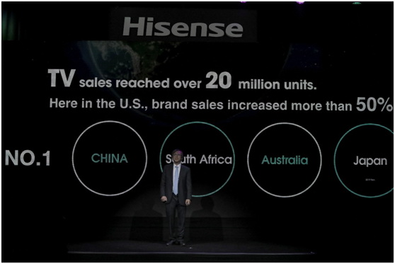 “2019年海信全球電視銷量超過(guò)2000萬(wàn)臺(tái)!绷譃懡榻B,除了在中國(guó)市場(chǎng)繼續(xù)保持第一,在南非、澳洲繼續(xù)保持第一,日本市場(chǎng)旗下兩個(gè)品牌11月份市場(chǎng)占有率第一。尤其是美國(guó)海信品牌業(yè)務(wù)增長(zhǎng)超過(guò)50%。