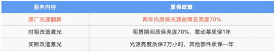 通過上表不難發(fā)現(xiàn),NEC原廠光源翻新的性價比很高。參照使用時長,設(shè)備提升亮度后持續(xù)運行24000小時(約6年),NEC原廠光源翻新的費用僅7.5萬元,相比時租或買斷的激光改造方式節(jié)省了3.5-4.5萬元。