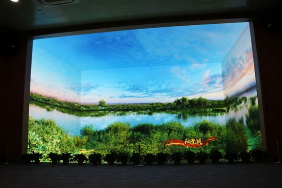 縱觀整體展館建筑風格,無處不彰顯出蘇州城市文化的獨特蘊含。設計師巧妙的將戶外蘇州美景“搬進”展廳內,形成超自然空間氛圍。如何利用大屏讓蘇州風貌更多元化展現(xiàn),聯(lián)建光電此次突破傳統(tǒng),大膽的將墻面與地面屏幕無縫拼接,數(shù)字沙盤與LED屏巧妙融合,亮麗動感的畫面、超前的創(chuàng)意造型讓人眼前一亮,上演了一場“人間天堂 蘇州之美”的震撼大片。