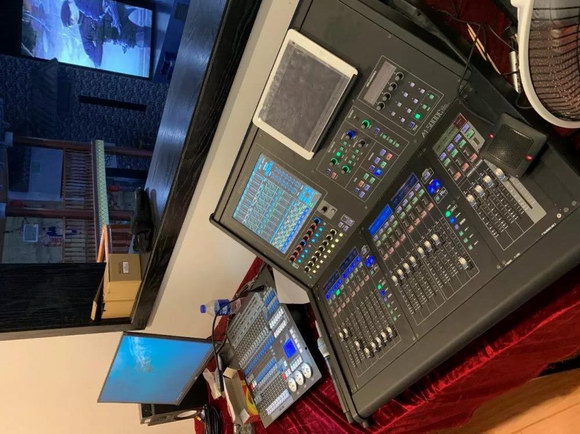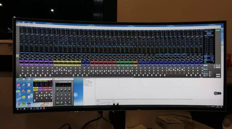 現(xiàn)場擴(kuò)聲系統(tǒng)采用了Roland混音系統(tǒng)和Atlas音響系統(tǒng)、Revolabs Elite高清數(shù)字無線系統(tǒng)。現(xiàn)場使用了超過6個(gè)無線手持,4套無線頭戴,6套無線領(lǐng)夾,8套無線鵝頸話筒,3臺天線放大器共24套無線系統(tǒng)。音響控制、混音和路由分配采用Roland 旗艦級M-5000數(shù)字調(diào)音臺和2臺S1608接口箱,組成52x24混音系統(tǒng)。接口箱分別置于舞臺和控制室,這些接口箱通過一條網(wǎng)線用REAC技術(shù)與M-5000調(diào)音臺相連,為了保證音頻系統(tǒng)傳輸?shù)目煽亢头(wěn)定性,同時(shí)還設(shè)計(jì)了Dante網(wǎng)絡(luò)音頻傳輸系統(tǒng)和REAC系統(tǒng)實(shí)時(shí)互為熱備份,不管是Dante或是REAC中斷都能保證系統(tǒng)正常運(yùn)行。M-5000支持128個(gè)自定義的混音總線,24個(gè)DCA編組,支持5.1聲系統(tǒng),功能強(qiáng)大,非常適合現(xiàn)場演出。