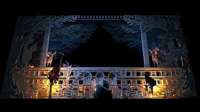 正投紗幕的運(yùn)用,將觀眾帶入“超越舞臺(tái)”的時(shí)空境界,沉浸式體驗(yàn)?zāi)Щ寐贸獭?/P>