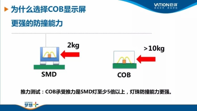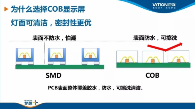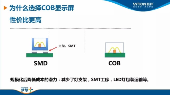 COB 高清顯示技術(shù)是業(yè)內(nèi)公認的最新一代LED小間距顯示技術(shù),Micro LED也是基于不同晶片尺寸和不同像素間距的COB技術(shù)和工藝。與SMD顯示技術(shù)相比,在小間距P2.0至P0.5分辨率區(qū)間,COB工藝技術(shù)結(jié)合了集成封裝和高密顯示技術(shù),具有高可靠性、高防護性的天然優(yōu)勢,其對比度、色域、一致性也具有差異化的優(yōu)勢,將成為LED小間距市場的重要新生力量。